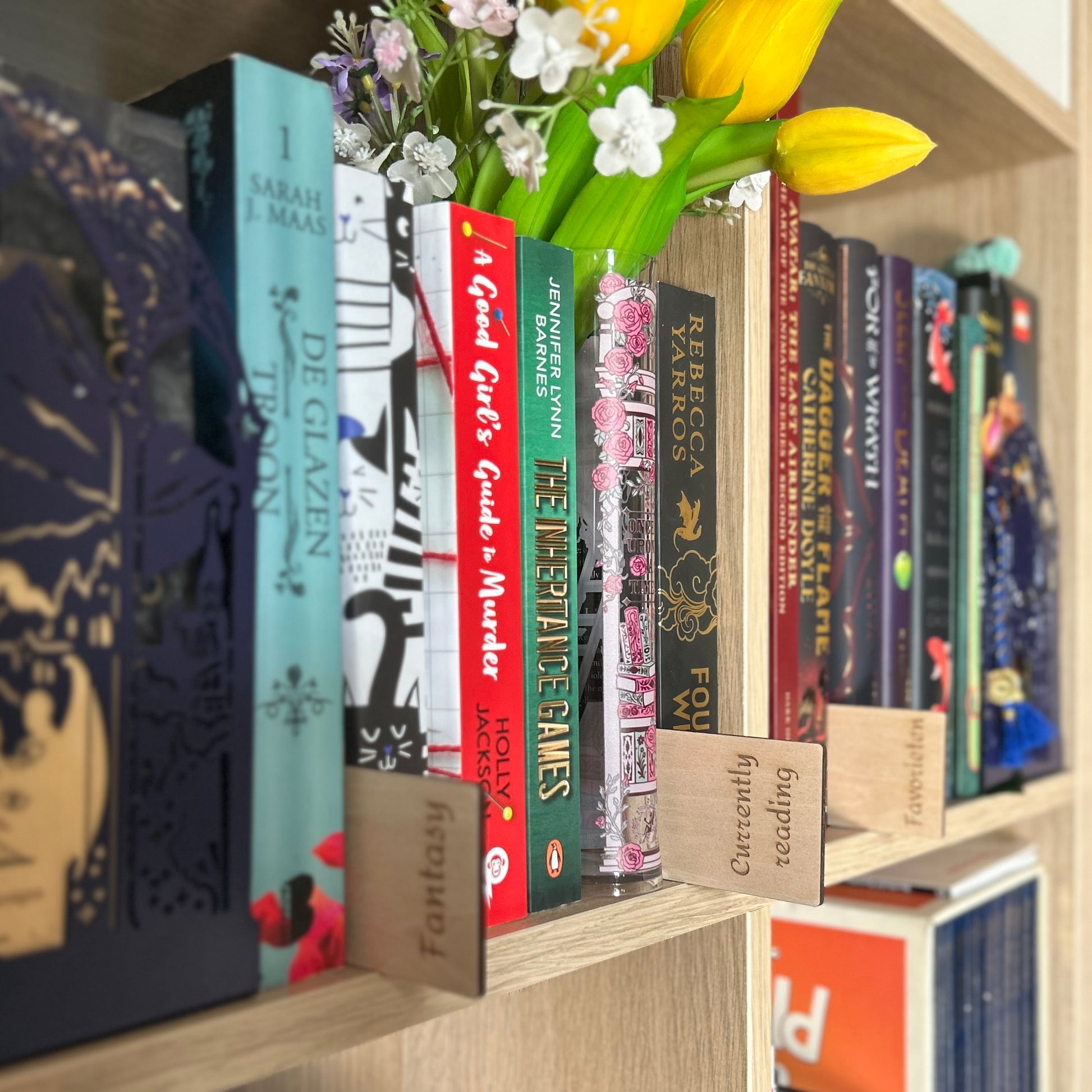 Deze boekenlabels zijn ideaal om je boeken te scheiden en categorieën te creëren. Denk aan labels zoals Fantasy, Thriller of Favorieten. Vul zelf de tekst in naar eigen wens.